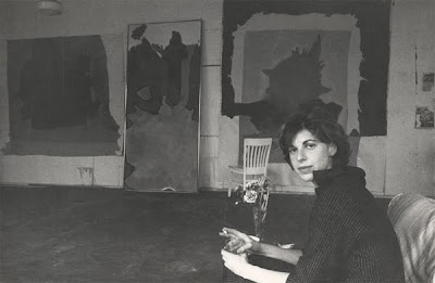 When I see works of art, I usually end up wondering who the artists were, how did they live their lives, what did they look like? Earlier in this week on Helen Frankenthaler and Spaced Out Orbit, I posted a video about her and her life (linked here). Since then I've begun looking for images of her on the internet and have found a number that show her and some that show her with her art. Here's what I've collected so far.